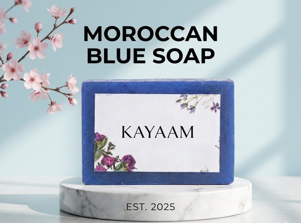 Discover the secret to radiant skin with Kayaam Moroccan Blue Soap, enriched with pure Nila (Indigofera tinctoria). This gentle yet effective formula deeply cleanses and nourishes the skin while promoting a naturally bright, even-toned glow from the very first use.